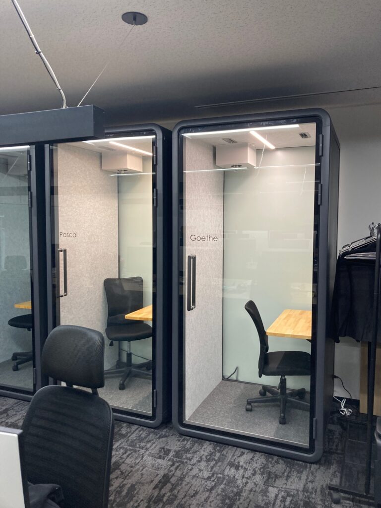 1. 集中環境の確保: 以前は席で対応せざるを得なかったWeb会議や集中作業をブース内で行えるようになり、社員一人ひとりの集中力が高まりました。