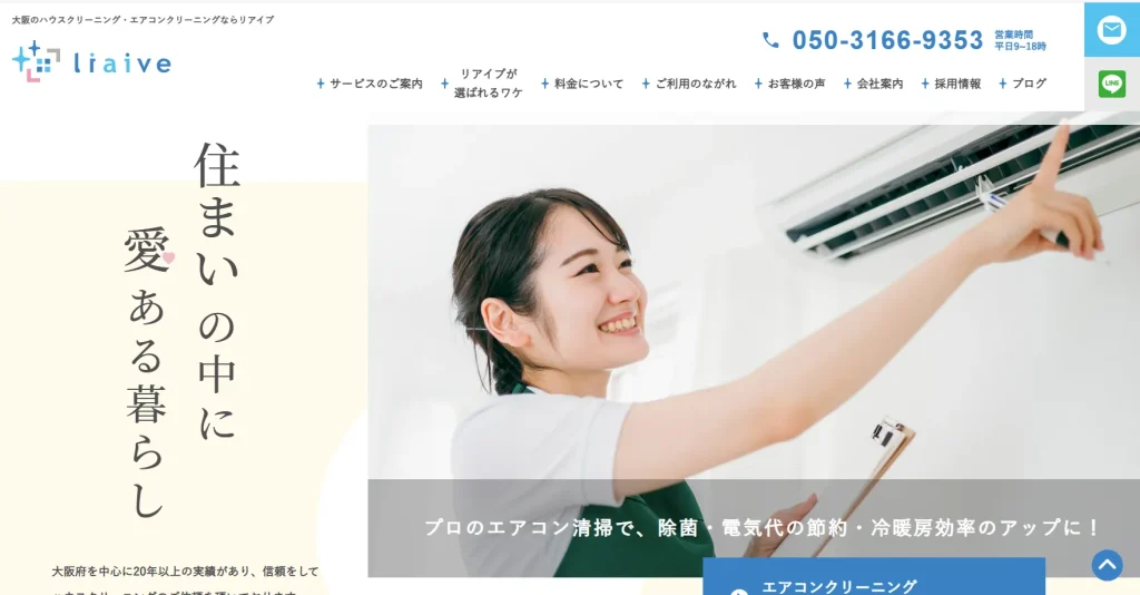大阪のハウスクリーニング・エアコンクリーニングならリアイブ